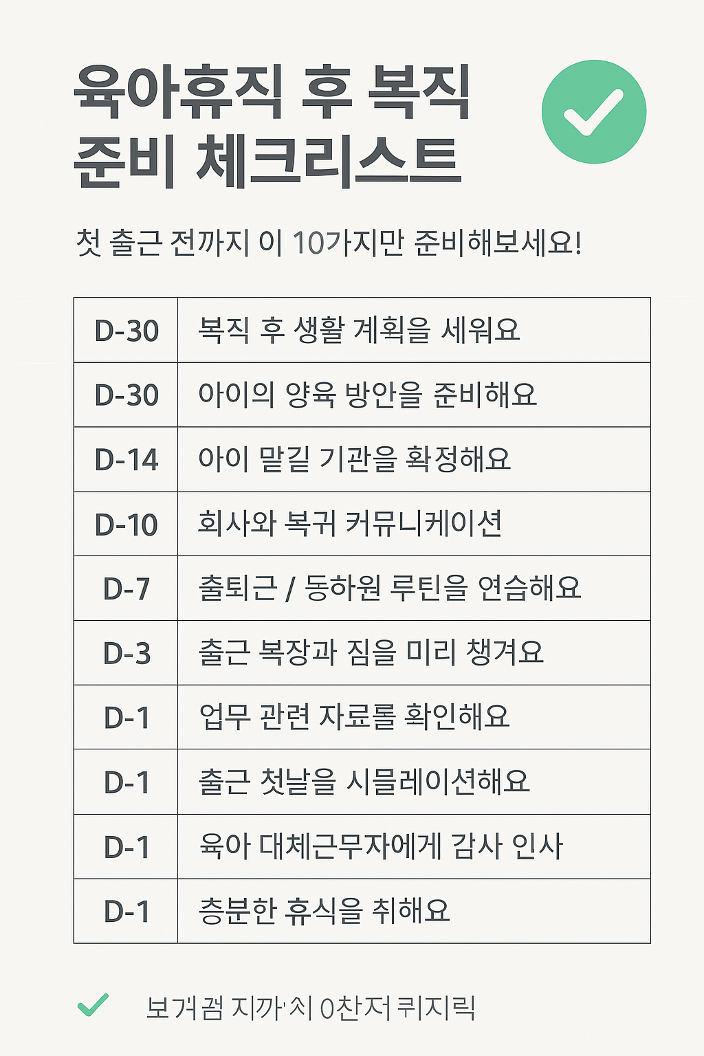 복직 준비를 미리 잘해두면 업무 적응도, 가정의 안정감도 훨씬 수월해진답니다.
